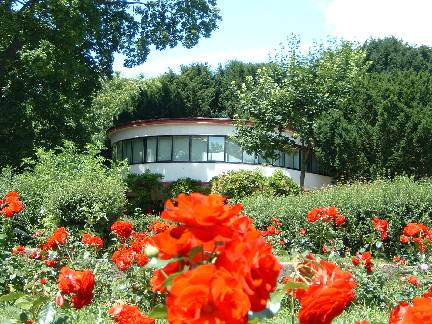 Rödelheims Wahrzeichen: Der 51 Meter hohe Rödelheimer Wasserturm! 1897 erbaut, bereits 1910 bei der Eingemeindung Rödelheims zu Frankfurt wieder außer Dienst gestellt. Stand seitdem ungenutzt am Schultheißenweg Ecke Seegewann. Das Architekturbüro Kern entdeckte den Turm 2003 und baute ihn zu Büros um. Ein Biergarten wurde 2004 direkt neben dem Wasserturm angelegt. Büroarchitektur im Wasserturm füllt das Wahrzeichen mit neuem Leben. Die Einfahrt nach Rödelheim am Hausener Weg mit dem 'Mini-Messeturm'. In den 1920er Jahren wurde das Rödelheimer Wehr gebaut und die Nidda reguliert. Bis zu diesem Zeitpunkt stand in Rödelheim immer das Hochwasser. Kurz vor dem Verfall wurde das Petrihäuschen gerettet. Malerisch liegt das Haus der Brentanos, in dem schon Goethe seine Verse geschrieben haben soll, an der Nidda. Neben dem Petrihäuschen (links) soll mit 250 bis 260 Jahren Europas ältester Ginkgobaum stehen. Der Brentanopark bietet den Rödelheimern Erholung und Ruhe. Mitten im Brentanopark das runde Pavillon, in dem der Heimat- und Geschichtsverein Ausstellungen und Lesungen veranstaltet. Wertvoll ist der alte Baumbestand im Brentanopark. Auch im Winter bieten Nidda, Petrihäuschen und Brentanopark reizvolle Motive. Bildung ist in Rödelheim international: Die französischen Schule Lycée Victor Hugo Das altehrwürdige Gebäude der ehemalige Körnerschule. Heute bildet die Körnerschule zusammen mit der Arndtschule in der Niddagaustraße die Michael-Ende-Schule, eine Grund-, Haupt- und Realschule. Den 'alten' Rödelheimern sind die Namen Körner- und Arndtschule allerdings vertrauter. Ein ausgedientes Schulpavillon wurde in den 1980er Jahren zum Treffpunkt der Vereine. Der Rödelheimer Vereinsring betreibt das Vereinshaus, in dem sich auch eine Gaststätte mit Außenterrasse befindet. Zahlreiche Veranstaltungen der rund 40 angeschlossenen Vereine finden dort statt. Das Vereinshaus ersetzt bis heute das Bürgerhaus, das zwar oft von der Stadt Frankfurt versprochen, aber nie gebaut wurde und wohl auch wird. Gleich neben dem Vereinshaus hat die Freiwillige Feuerwehr Rödelheim ihr 'zu Hause'. Das Feuerwehrhaus entstand ebenfalls in den 1980er Jahren. Wo gibt es Europas größtes Freibad? In Rödelheim! 10.000 bis 12.000 Badegäste tummeln sich an heißen Tagen im Brentanobad. Im Super-Sommer 2003 kamen rund 230.000 Badehungrige. Doch die Zukunft des alten Niddaflußbades ist ungewiß. Das 1964 in Stand gesetzte Bad müßte dringend saniert werden. Innerhalb des Brentanobades findet im Sommer immer Freilichtkino statt. Da ist schon so mancher Hollywood-Klassiker über die Großbild-Leinwand geflimmert. Der kleine Nachbar des Brentanobades ist das Freibad Hausen. Bis zu 3.000 Badegäste finden dort Platz. Großer Vorteil des Bades: Das Schwimmerbecken ist beheizt. Das Freibad Hausen öffnet bereits Ende März für die eingefleischte Schimmergemeinde, die sich morgens um 6.30 Uhr, wenn es sein muß bei 5 bis 10 Grad Außentemperatur, trifft. Erst Anfang Oktober wird das Hausener geschlossen. Knapp 170.000 Badegäste zählte man im Super-Sommer 2003. Dschungel in Rödelheim? So ist es! Der Biegwald bildet die Grenze zu Bockenheim sowie dem Rebstockgelände und bietet lauschige Waldwege. Neben Brentano- und Solmspark gehört der Wald zur grünen Lunge Rödelheims. Der Spielplatz im Biegwald ist immer wieder ein beliebtes Ziel für Kinder. Auf der große Biegwaldwiese fand früher immer die Rödelheimer Kerb statt. Heute ist sie ein beliebter 'Bolzplatz'. Frankfurt liegt am Main und Rödelheim an der Nidda, die bei Höchst in den Main fließt. Das Foto zeigt die Nidda mit Niddauferweg in Blickrichtung Nied / Höchst. In der ersten Hälfte der 1900er Jahre befand sich an der Mühlbachmündung ein Flußbad. In den 1960er Jahren nahm die Verschmutzung der Nidda so zu, daß ein Baden im Fluß nicht mehr möglich war. Das alte Flußbad ist heute mit Sträuchern und Bäumen zugewachsen und bietet malerische Motive. Bei den Rödelheimern ist diese Stelle inzwischen als Luftbad bekannt. Auch wenn die Wasserqualität wieder gut ist, gehen heute dort bestenfalls die Hunde baden. Der Solmspark beherbergte bis zum 2. Weltkrieg das Rödelheimer Schloß. Das Schloß wurde im Krieg zwar stark beschädigt, allerdings nicht völlig zerstört. Was amerikanische Bomber nicht schafften, besorgten anschließend deutsche Bagger, sonst würde man auf diesem Bild die Außenmauern des Schlosses noch gut erkennen..